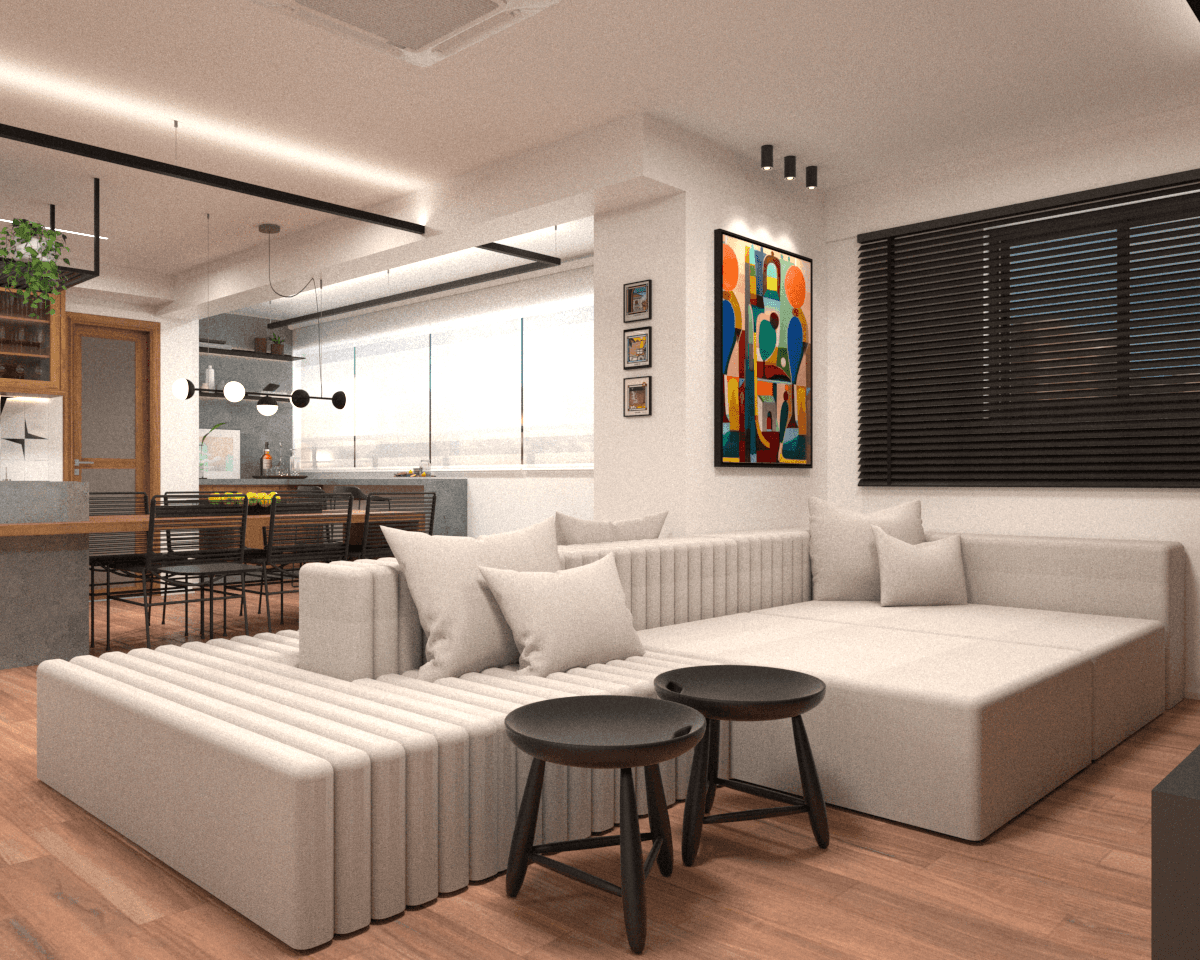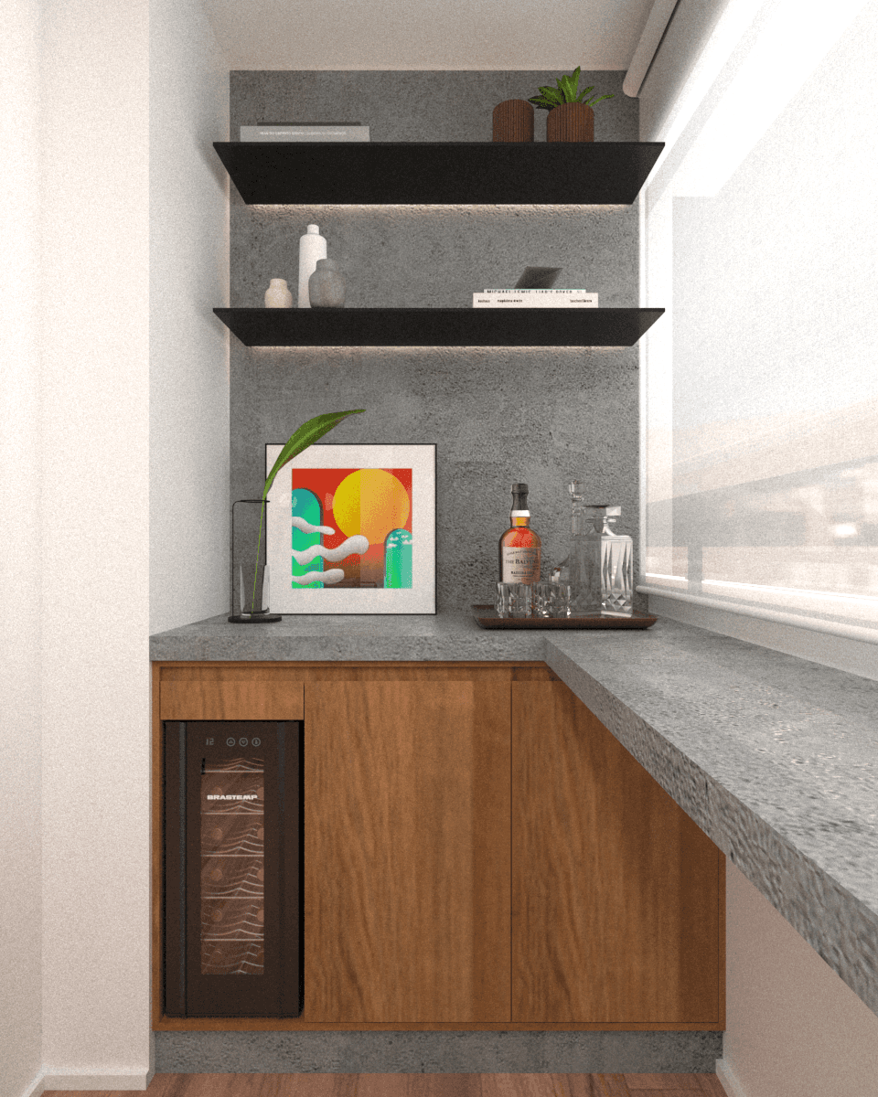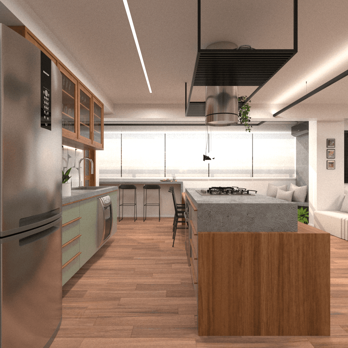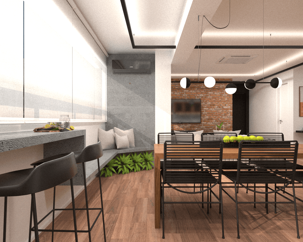 The goal of this project was to create a comfortable and inviting home where the client could host dinner parties and gather with friends. Pedro, an avid cook, envisioned the kitchen as the true centerpiece of his apartment. To achieve this, we removed one of the bedrooms and the existing kitchen walls, creating an open-concept layout that seamlessly integrates cooking, dining, and socializing. The bilateral sofa played a central role in connecting the kitchen to the living room, allowing Pedro to interact with his guests while preparing meals.