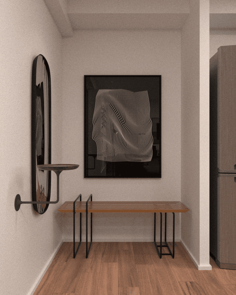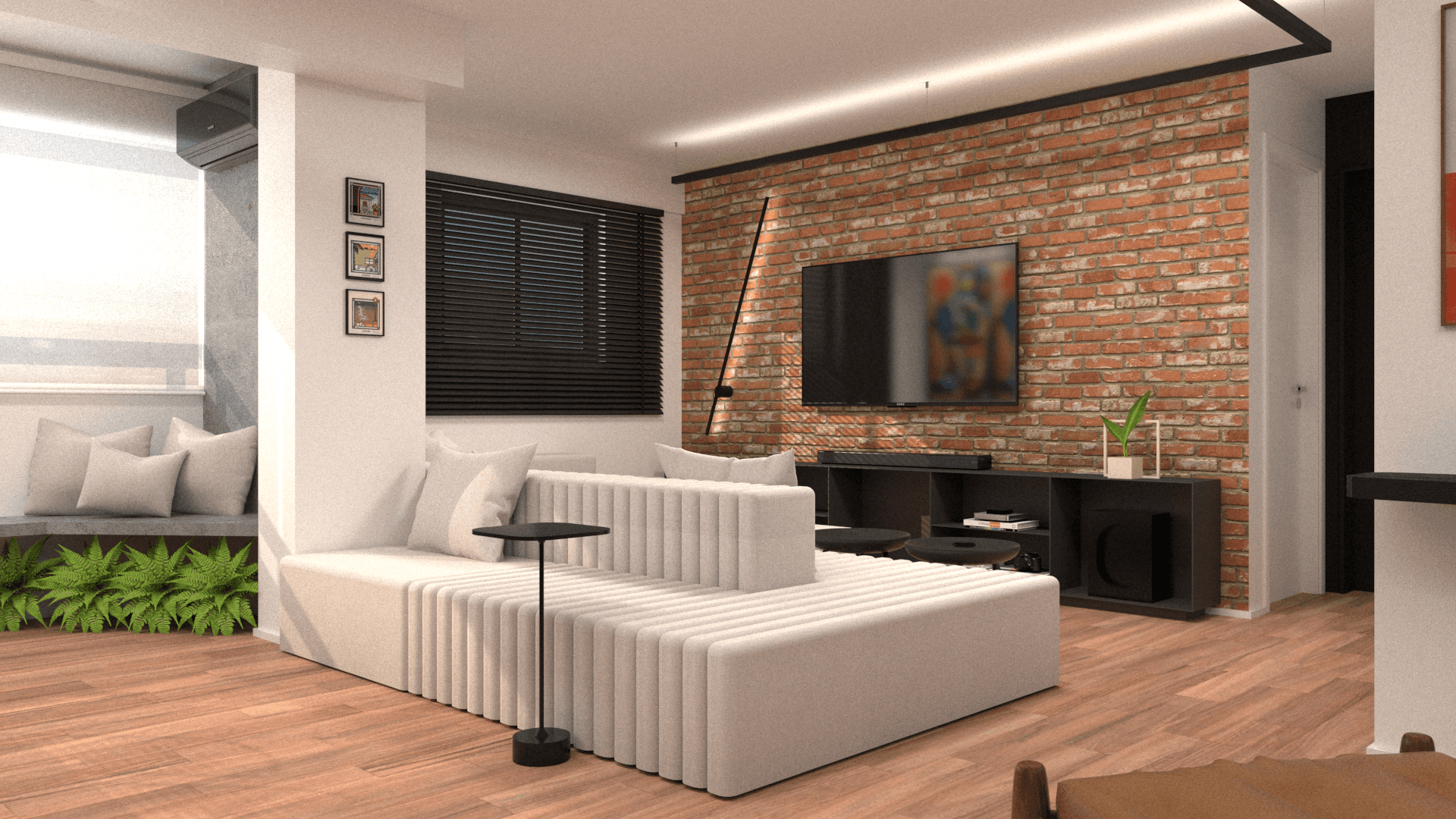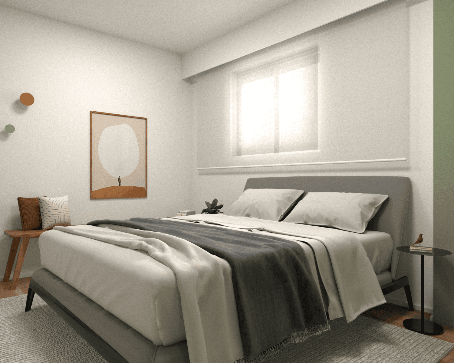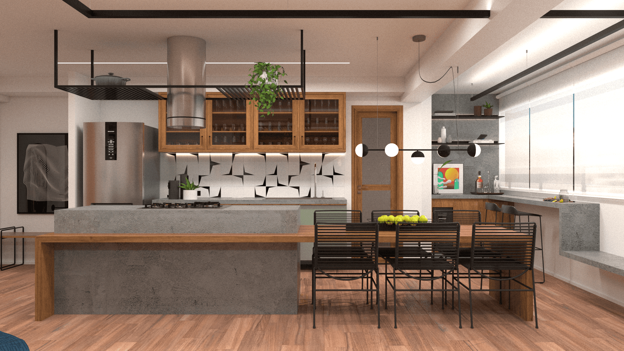 The goal of this project was to create a comfortable and inviting home where the client could host dinner parties and gather with friends. Pedro, an avid cook, envisioned the kitchen as the true centerpiece of his apartment. To achieve this, we removed one of the bedrooms and the existing kitchen walls, creating an open-concept layout that seamlessly integrates cooking, dining, and socializing. The bilateral sofa played a central role in connecting the kitchen to the living room, allowing Pedro to interact with his guests while preparing meals.