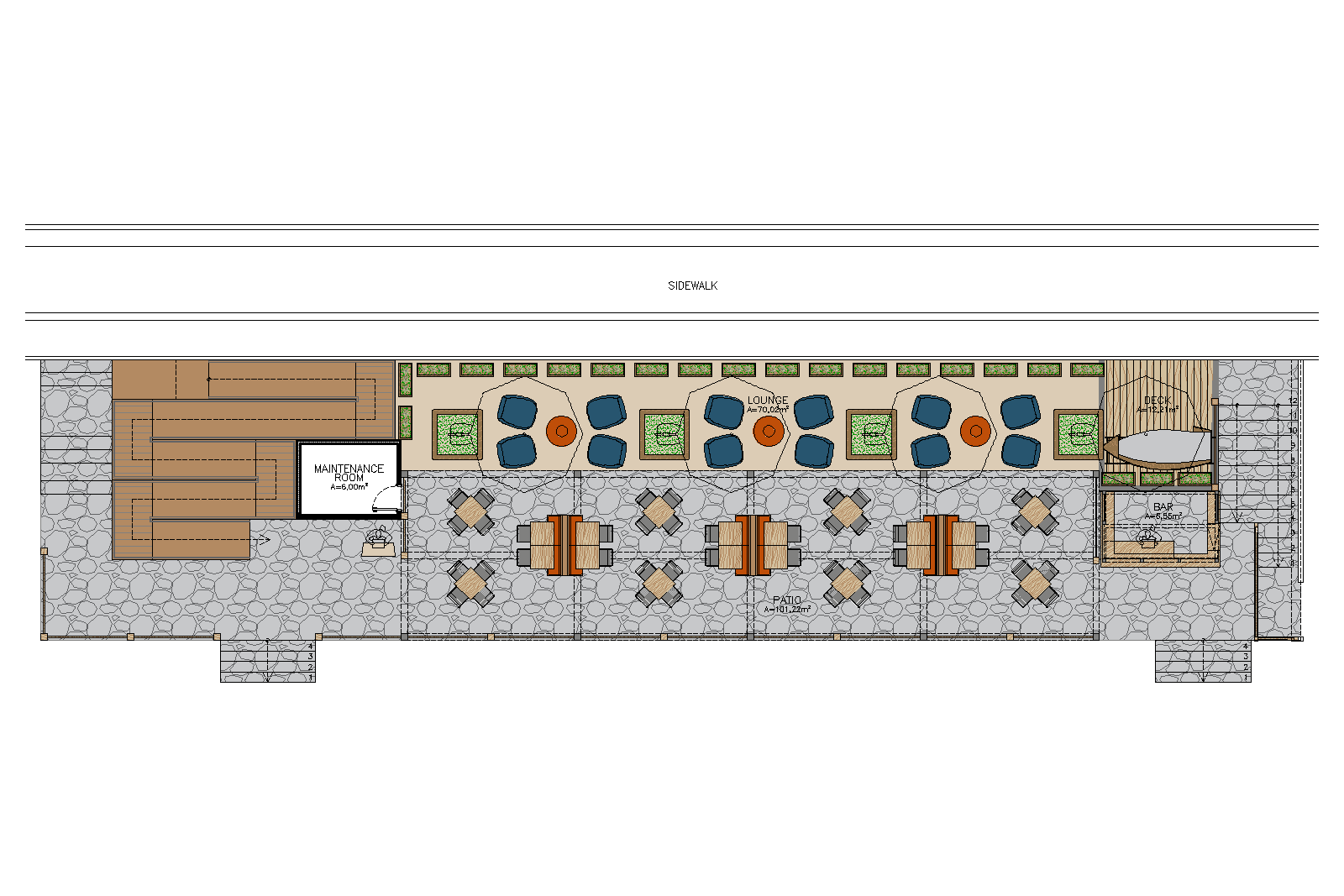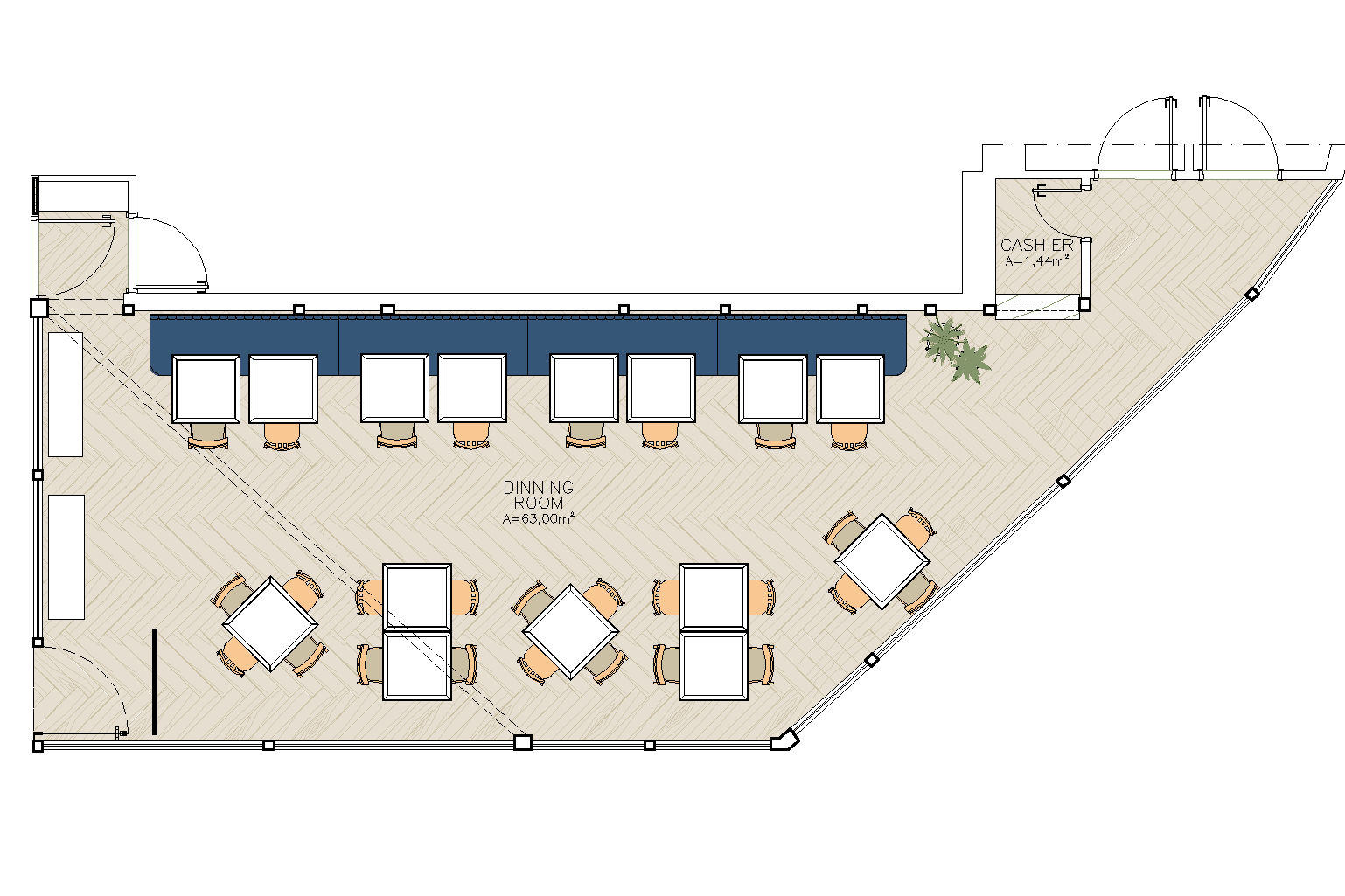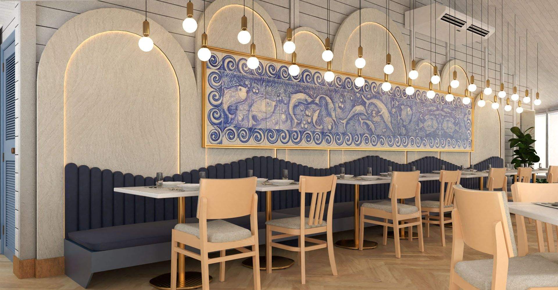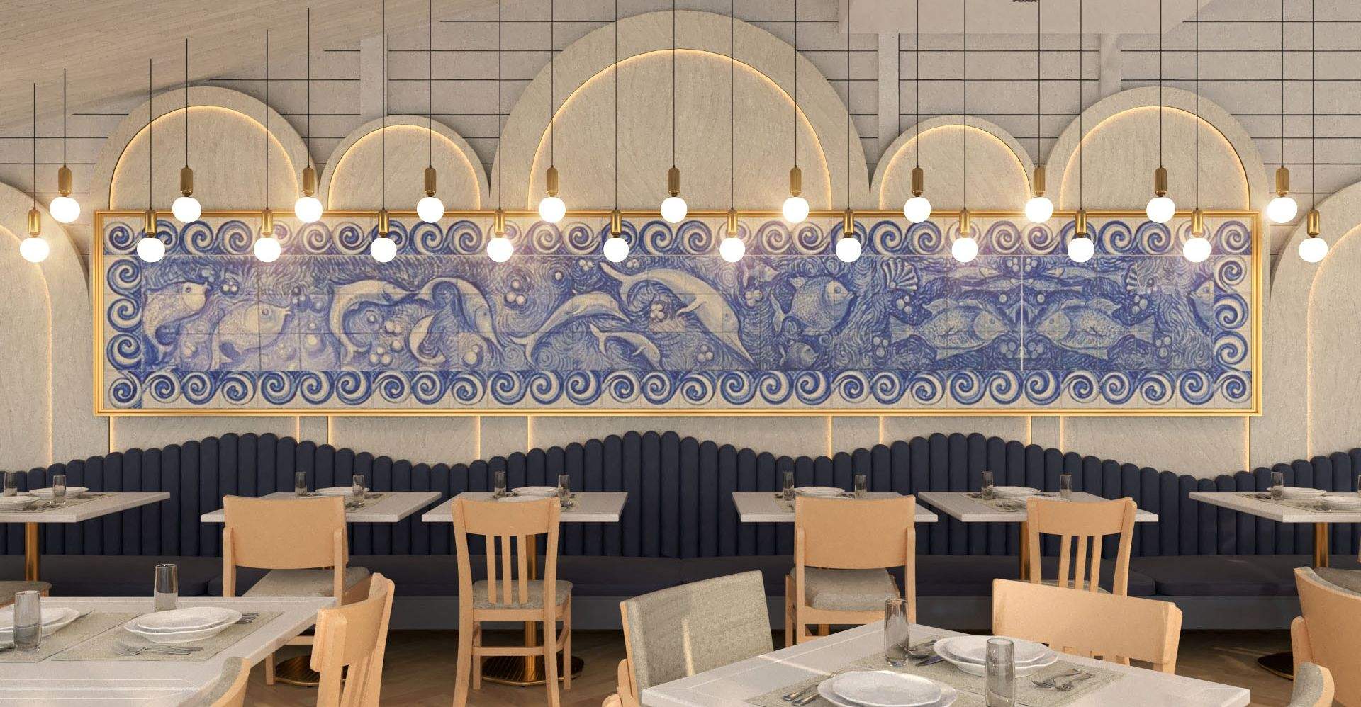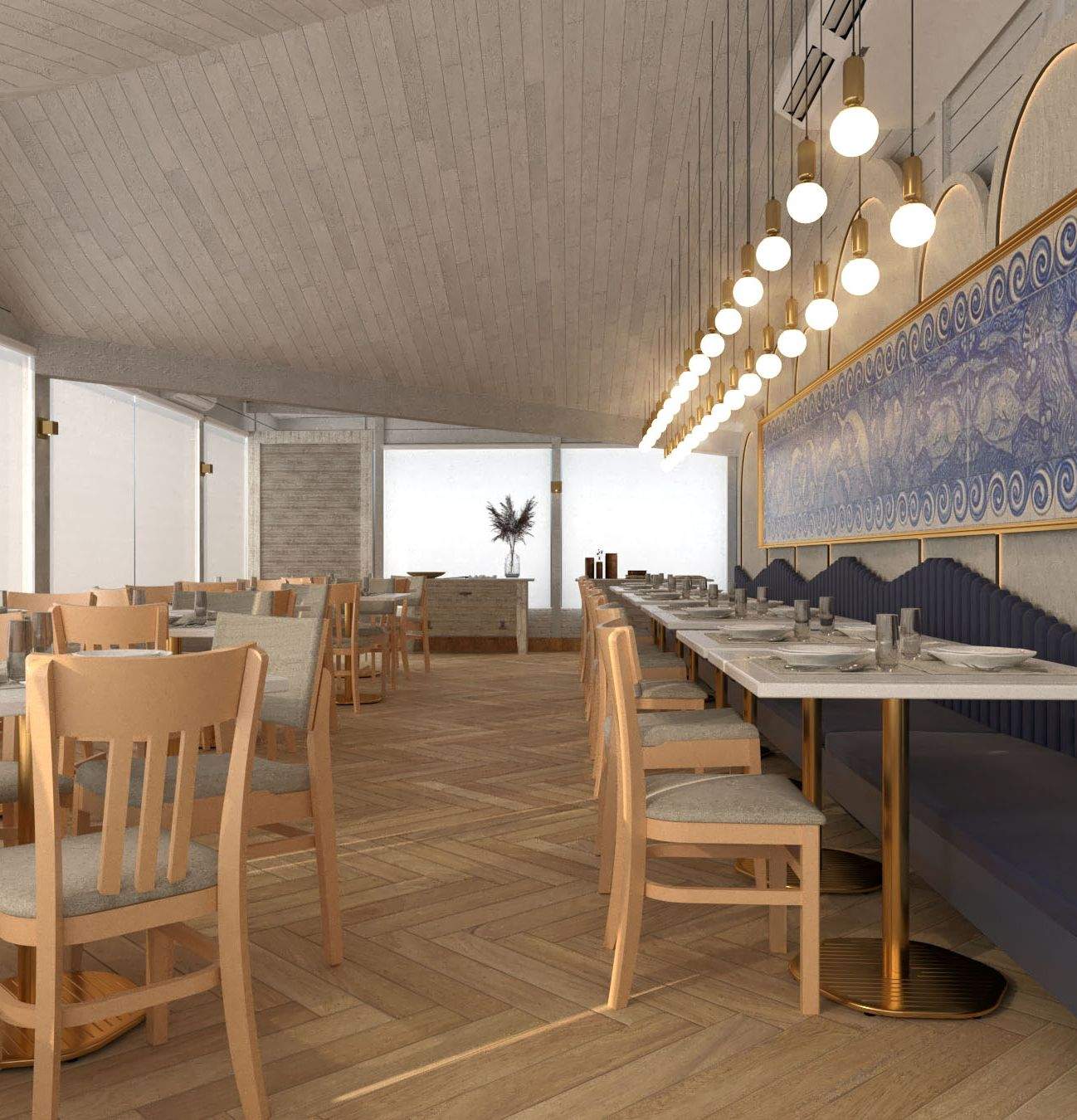 In the dining room, the main request was to preserve the existing mural created by a local artist in the previous design, as it is considered a signature element of the restaurant’s identity.